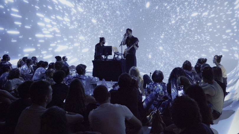 STELLAR DRIFT est un rituel audiovisuel immersif et cosmique performé en live par Gamgie (Visuels) et David-Alexandre Chanel (guitare et voix). Dans ce spectacle, le public va venir s’immerger pour ressentir un état particulier : le drift. Fruit des expérimentations de David-Alexandre et Gamegie, le drift est un état mental qui ressemble à un doux flottement, une dérive qui nous berce, à mi-chemin entre l’hypnose, la transe ou un voyage psychédélique. Dans l’espace, rien n’est immobile, tout est en mouvement. Le nom scientifique donné à cette constatation est “stellar drift”, la dérive stellaire. Inspiré par ce phénomène et par l’esthétique du cosmos, STELLAR DRIFT guide le spectateur par les images et la musique dans un voyage en lente dérive qui l’emmène dans les profondeurs de l’espace.